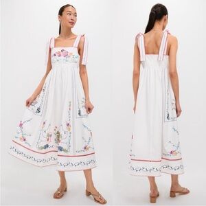 Hunter Bell Midi Dress Stefy Embroidered White Cotton Floral NWT 6