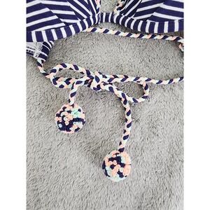 Victoria's Secret The Fabulous Striped Bikini Top Size 34B Pom Pom Ball Tassels
