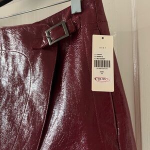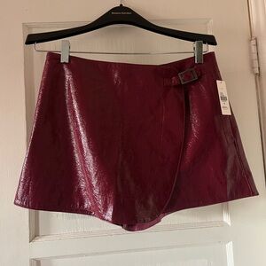 Anthropologie / Maeve Faux Leather Mini Skort - Red Berry