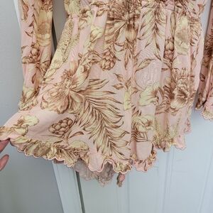Agua Bendita By Target Women's Romantic Floral Print Bell Sleeve Romper SZ Small