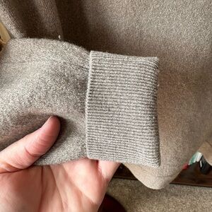 Great overall with one small flaw — a tiny surface-level hole on the right shoulder that does not go all the way through the knit (shown in photos). No other issues.