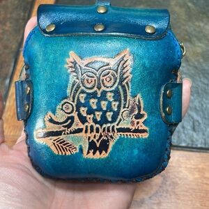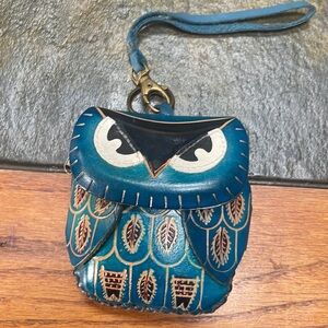 2 owl embossed leather handmade crossbody wristlet keychain bag handbag purse