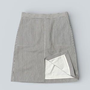 In great pre-owned condition with no holes, tears, or stains. Black and white vertical striped A-line skirt in lightweight seersucker fabric. Features functional side pockets and a flattering, easy fit. Made from 100% cotton.