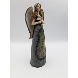 Unbranded Christmas Holiday Angel Holding Star Blue Resin Mosaic Stained Glass Home Decor 11". Wings are brushed off-white.