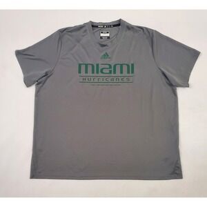 NCAA Miami Hurricanes Adidas Dry Fit Gray Adults Short Sleeve Tshirt Tee