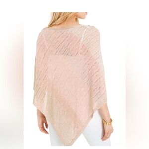 White House Black Market Ombré Poncho, Size S, Color Toasted Sesame, Brand New With Tags and has never been worn. Originally purchased from WHBM directly. This beautiful poncho has some neutral shades of pink and tan, subtle metallic thread, and silver-tone button detail on the shoulder. A great modern sweater alternative.