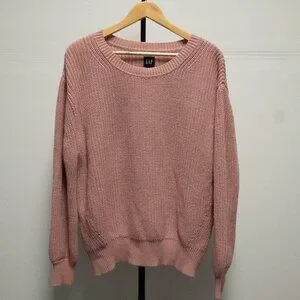 Soft blush pink knit sweater from GAP, made from 100% cotton. Features a classic crew neckline, ribbed cuffs and hem, and a relaxed, easy fit that works year-round. Lightweight but cozy — perfect for layering or wearing on its own in transitional weather.
