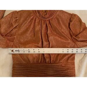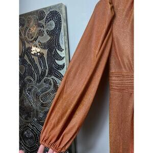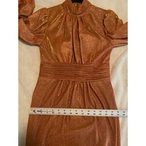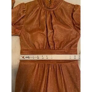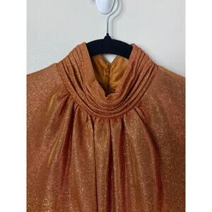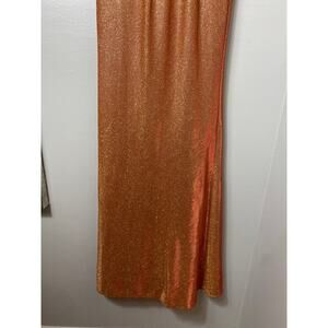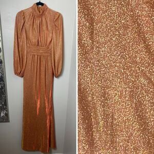 NWT MACDUGGAL DRESS GOWN 2 ORANGE RUST GOLD DRAPED GLITTER HIGH NECK PUFF SLEEVE TRUMPET LONG MAXI DRESS