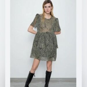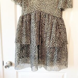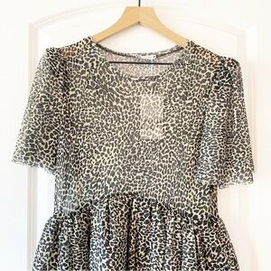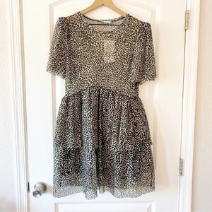 ZARA Leopard Print Tiered Tulle Mini Dress NWT