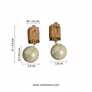 Gold Tone Rectangular Pink Crystal Faux Pearl Earrings Tanya Creations