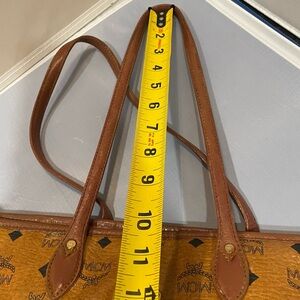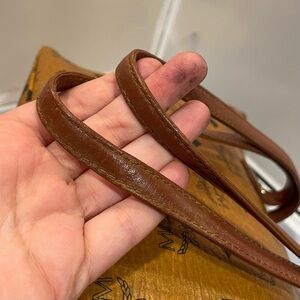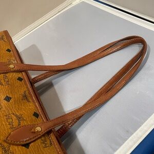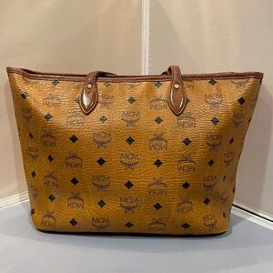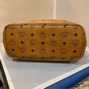 Used MCM Visetos German Brown Leather Gold HW Zippered Tote Bag Purse Auth Read!