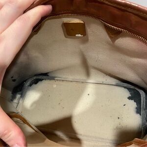 Great condition. Outside is in great shape with light wear to the corners (as pictured). The straps and top leather trim were repainted and sealed. The inside has ink stains and other stains throughout. See pics for condition and measurements. 100% authentic.