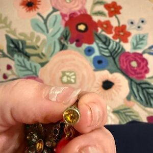 Elegant red bracelet with a stunning butterfly charm. Features multicolored stones and gold accents.