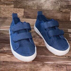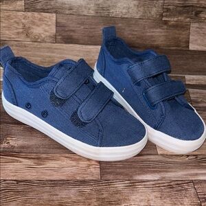 Navy canvas sneakers with dual straps. Comfortable and easy to wear.