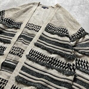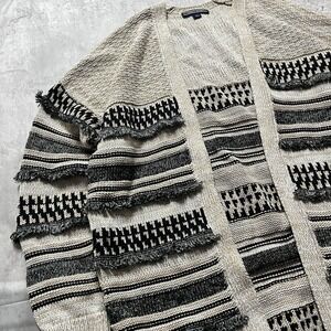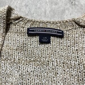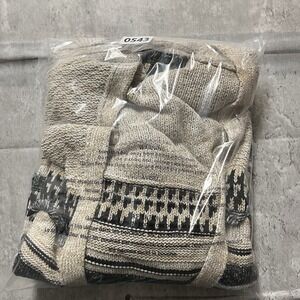 Tommy Hilfiger Cardigan Mens L Nordic Henley Mock Neck Camel Hair Striped
