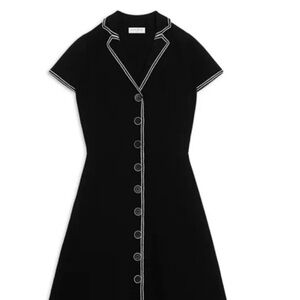 Sandro Laureene Black and Cream Contrast Topstitched Dress
