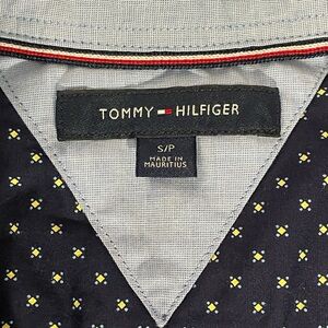 Tommy Hilfiger Men’s Small Button-Down Shirt Navy Yellow Print Long Sleeve Cotton Stretch EUC