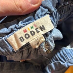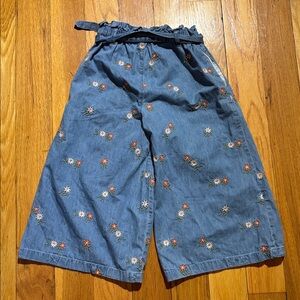 Mini Boden Floral Embroidered Blue Tie Waist Denim Culotte Pants