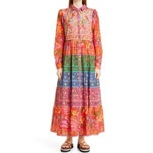 Farm Rio Mixed Boarder Print Button Front Maxi Dress Multicolor Size Large