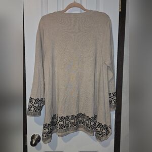 Stylish beige tunic with intricate black patterns. Perfect for any occasion.