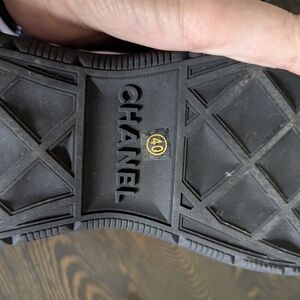 Step up your style with Chanel's sleek black athletic shoes. Perfect for any workout or casual outing.
