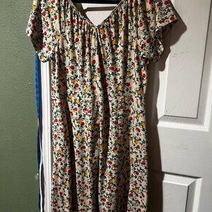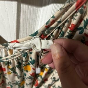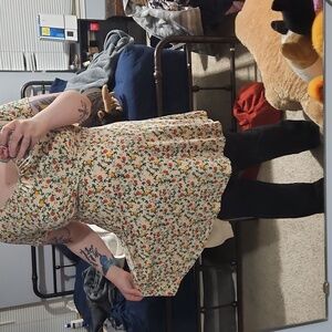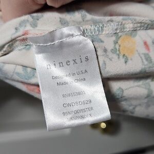 super cute and soft floral bloom dress with wrap tie no known flaws from a clean smoke free home model is 5'5 38DDD pants size 12-14 shirt size l-xl goes a above my knees a bit too short for my liking unfortunately