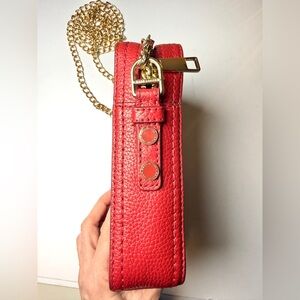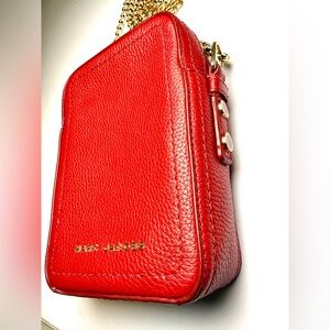 Marc Jacobs North South Crossbody Bag Savvy Red Pebbled Leather Gold Chain
