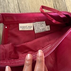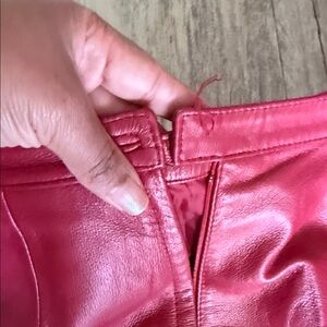Step out in style with this elegant red leather skirt. Perfect for any occasion, this skirt adds a touch of sophistication to your wardrobe.
