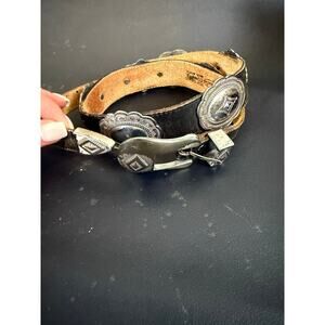 It features stunning silver conchos that add an authentic touch of Western charm, making it a perfect accessory for jeans, skirts, or even over a dress to cinch the waist. The size 28 ensures a comfortable and flattering fit.
