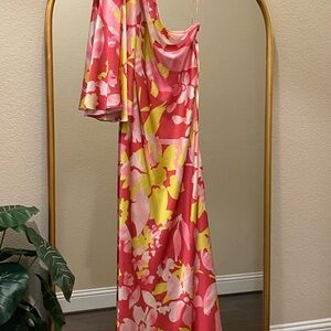 Anthropologie Mandira Wirk Vibrant Floral One Shoulder Gown Maxi Dress Size L