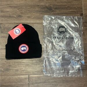 CANADA GOOSE BEANlE/HAT BLACK W/ RED LEBEL