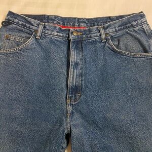 Wrangler Relaxed Fit Rugged Wear Blue Jeans with Red Comfort Lining w38 x 32 EUC