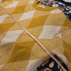 Cozy oversized sweater in mustard yellow and cream by Jacqueline de Yong. Argyle checked plaid pattern. Ideal for layering. Ideal for the slouchy, preppy look.