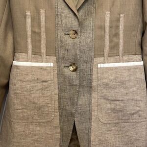 Burberry Contrast Seam Wool-Cashmere Linen Blazer in Pecan Melange, NWT
