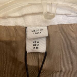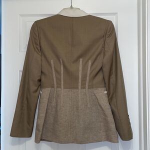 Burberry Contrast Seam Wool-Cashmere Linen Blazer in Pecan Melange, NWT. Size 2 US. Luxurious in fabrication, this wool and cashmere blazer jacket is defined by its impeccable tailoring, structured boning at the waist and on-trend layered neutral look.