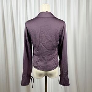 Forever 21 Purple Satin Tie Front Collared Long Sleeve Shirt Women's Size Small