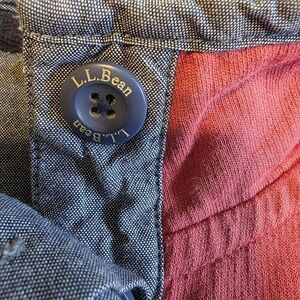 L.L. Bean Men's XL striped long sleeve pullover in red and navy. 100% cotton, quarter button front, and classic L.L. Bean logo patch. Measurements approx. 22" pit to pit, 27" length. Great casual and layering piece in excellent condition.