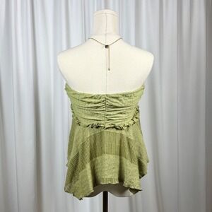 Boho whimsical Urban Outfitters smocked ruched tube top in green. This boho piece features a patchwork design with a flattering peplum silhouette. The smocked bodice offers a comfortable and adjustable fit, while the ruffled hem adds a touch of playful detail. The unique texture and layered panels create visual interest.