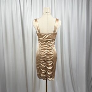 Satin Ruched Bodycon Mini Dress Rhinestone Straps Size 7