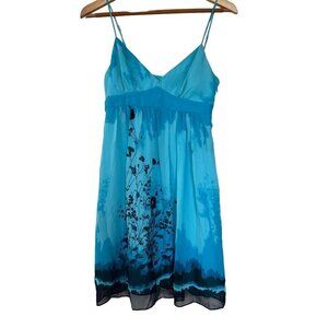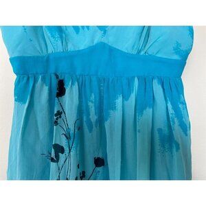 BCBG 100% Silk Blue Floral Baby Doll Dress Size 6,