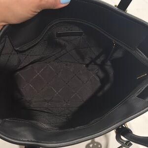 New Michael Kors black Carryall tote bag is. Featuring a sleek design with the iconic MK logo. Adjustable shoulder straps, inside zip pocket and 2 flat pockets. zip top closure works perfectly. Tote is in great condition inside and out. Non smoking home. Has been stored, unused.