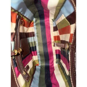 • Interior: Striped satin lining; multifunction pockets; Hook and loop closure