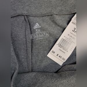 New With Tags Adidas Womens Size 3X Essentials High Waisted Logo Legging. These Adidas legging give a sporty twist with a linear logo on one leg. High waisted fit, made with sustainable cotton, 93% cotton 7% elastane, high rise, tight fit, full length.