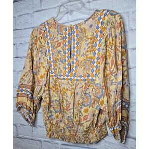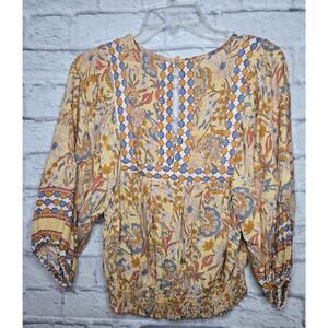 Rachel Zoe yellow boho floral smocked v-neck spring/summer blouse top small