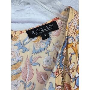 Rachel Zoe yellow boho floral smocked v-neck spring/summer blouse top small.