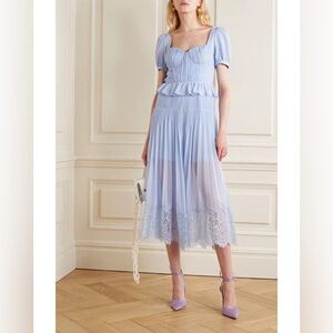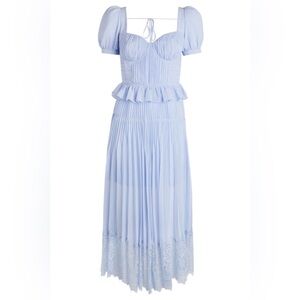 Self-Portrait Light Blue Short Sleeve Chiffon Midi Dress US4/UK8 NWT.