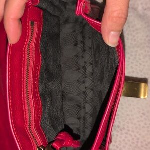 Used ps1 pouch in lipstick color. Still in good condition with some creases in the back. some scuff and scratches in nonvisible areas as shown in photos