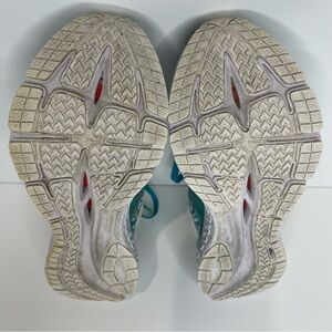 Preowned, No tears or holes, Light overall ware and light discolor on white heel material area- see photos