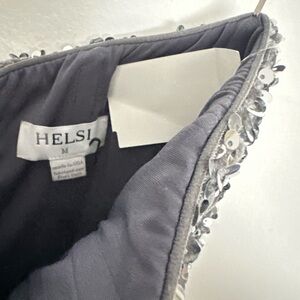 Turn heads in this glamorous strapless silver sequin dress. Ideal for evening events, it features a stylish side slit for a touch of sophistication.