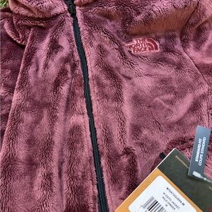 Warm maroon fleece jacket by The North Face. Features a full zip and plush texture.